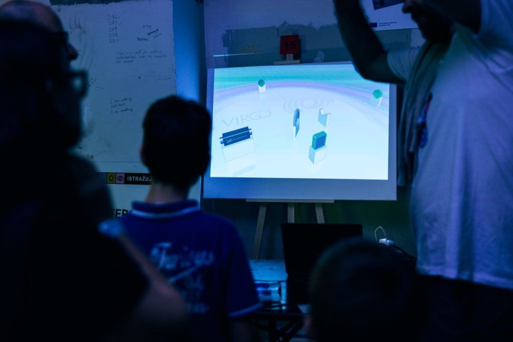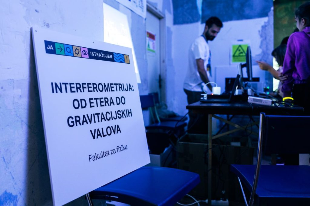 U sklopu Noći istraživača Aldo Arena, Karlo Veličan i Nenad Kralj predstavili su jednostavan interferometarski postav u kojem su posjetitelji u kontroliranim uvjetima mogli sami mijenjati interferencijski uzorak, mijenjajući napon na piezoelektričnom elementu. Uzorak je bio vidljiv na zidu, kao i na osciloskopu, a pozadinska projekcija dodatno je ilustirala princip interferencije dva vala kao i kako se ona koristi u detektorima gravitacijskih valova.