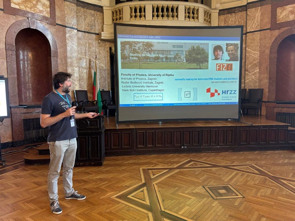 Marin Karuza i Nenad Kralj sudjelovali su u trećoj godišnjoj konferencji COST akcije “Cosmic WISPers” u Sofiji, Bugarska. Nenad Kralj održao je pozvano predavanje o napretku optomehanike, u sklopu čega i o ideji i izvedbi HRZZ projekta optomehaničke kvantne memorije za pojedinačne fotone. Transparencije se mogu naći na stranicama sastanka.